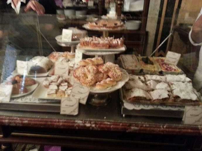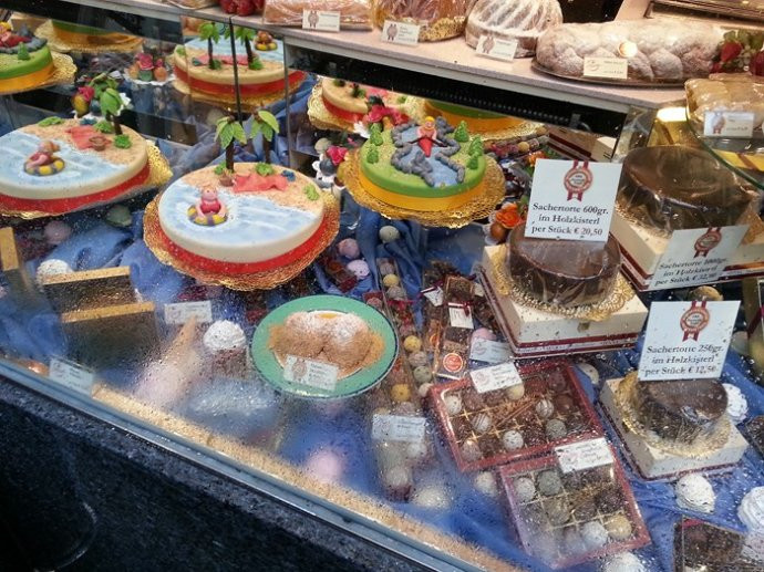 逛完坐地铁到Herrengasse 到那边的Cafe Demel 吃饭(这是维也纳一家很出名的Cafe)。这家cafe晚上7点就关门,不能吃夜宵的!周末人巨多,很难有座,只能外卖。当日去的平时一点,等了几分钟就有座。