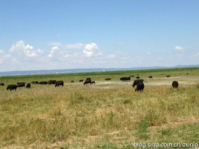 介绍一下,这个湖是个生态湖。如果有看我之前写意大利嘎达湖游记(Lago di Garda),那个湖我会称之为“风景湖"。这个湖是有特殊生态环境,有很多芦苇,很多鸟,湖水是绿色的(在网上我没找到原因,不知道是什么微生物或者生 态引起的)。而风景湖就是纯粹看风景的。风景嘛,这里看上去是有点泛黄的,不像Garda那么绿油油。但是超级好玩,骑车绝对一流!此外,这里的 Trockenbeerenauslese很出名,维也纳这个湖就产这个酒最出名,很甜很甜,一定要尝(下文再详述)!另外,这个湖部分位于匈牙利的。