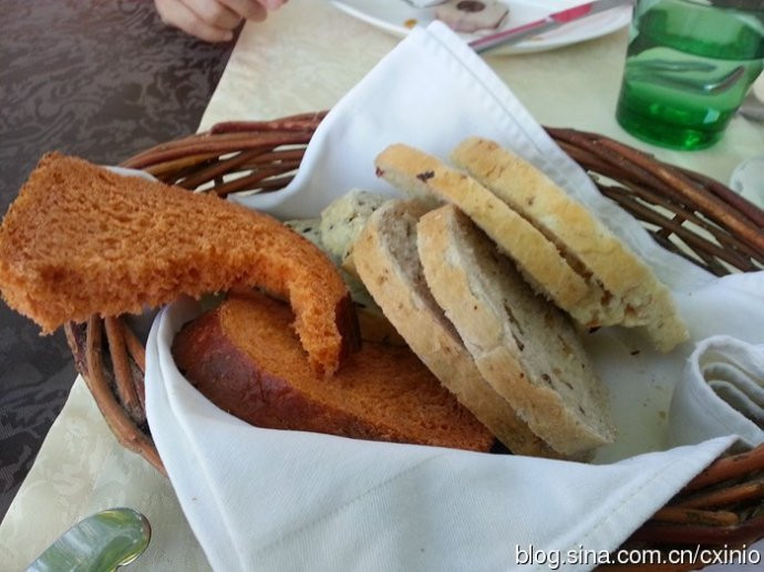 这家餐厅是这几天去过服务最好的一家。他家的面包特别好吃,有多重口味,番茄,培根,核桃,全部都很好。