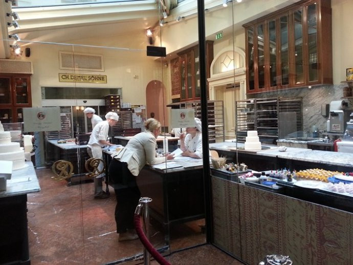 (下图:Demel一角,店有三层,每层都不大,这家装修不是特别豪华,但有cafe的高尚气派)