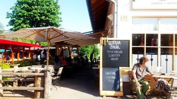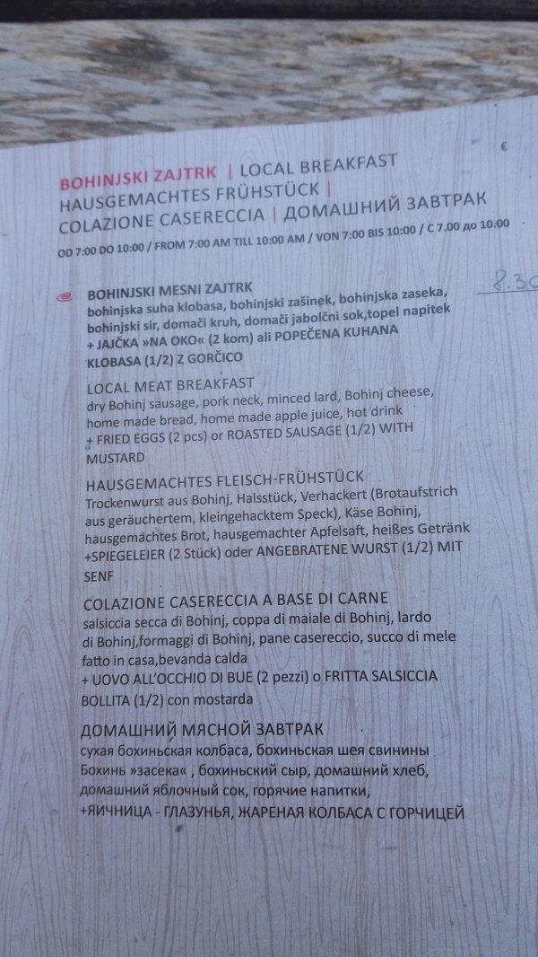 早上先去Strud'l(具体地址自行tripadvisor,就在镇上大街Triglavska cesta转盘那里,隔壁是游客中心)l吃早饭,我们吃了一个是本地香肠拼盘+本地奶酪的,另外两只鸡蛋,一杯苹果汁一杯茶,面包,够两个人吃,8.3欧。