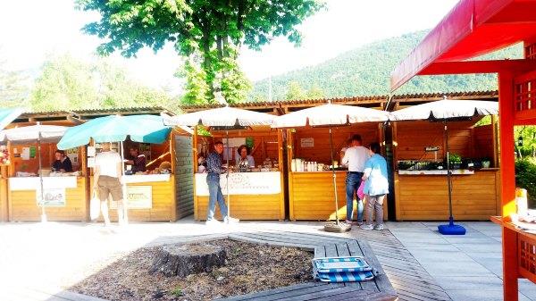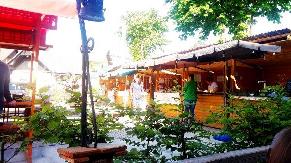 香肠嘛,就是咸味为主,不是很特别,不过来了就尝尝吧。茶据说是Bohinj的高山茶呢。这里隔壁是周六集市,有香肠,蛋糕,奶酪这些东西卖,还有一个妇女自己打了发卡等饰物,我原来想漂流回来买,不过已经关门了。这里只有早上开。