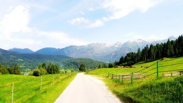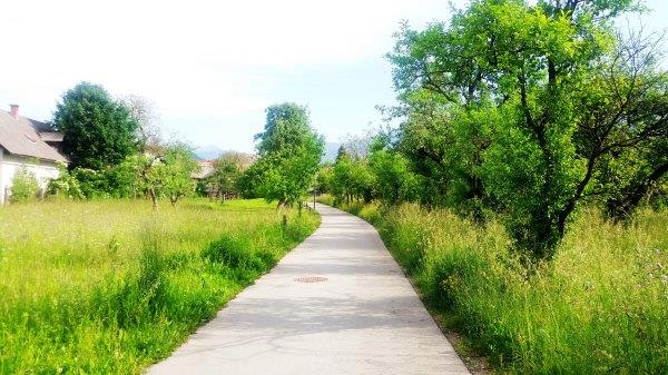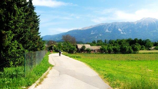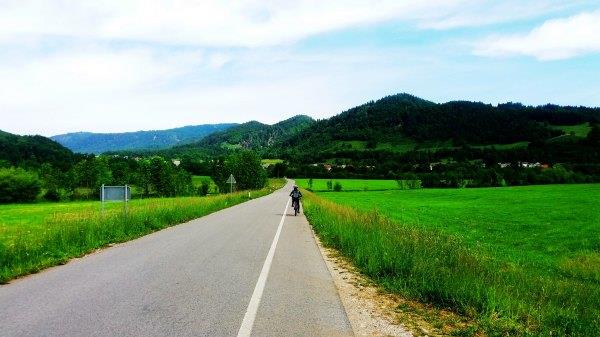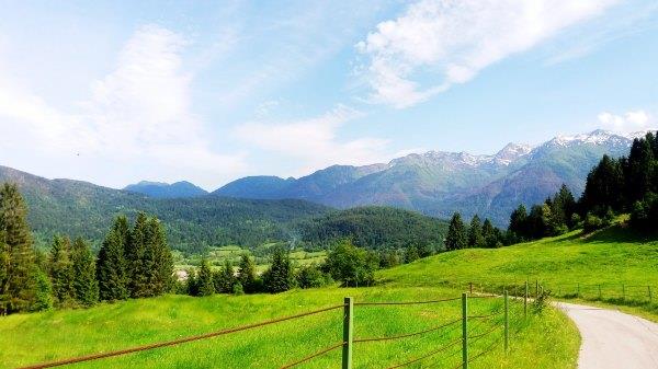 我 们先骑到东侧过了Bled Union那边加油站,经过Selina Cesta上去。这条路人少,有起伏,经过农村,能看到美景。路上有指示牌的,Primoz也给地图,当然最好还有手机地图就不会弄丢了。我今年骑得时候 发现去年骑错了路,去年经过一个小镇,有很多人及车,今年就没有。