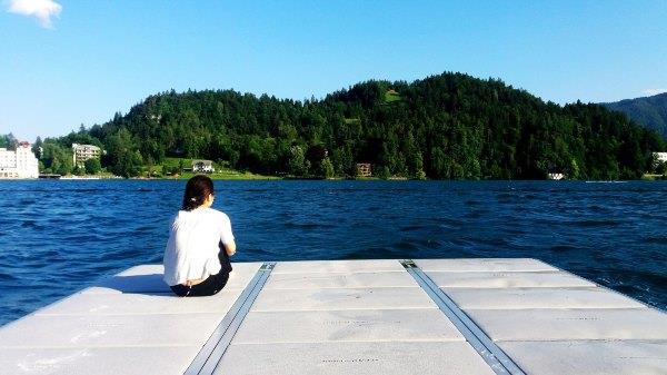 (下几图:在享受Lake Bled的小j)