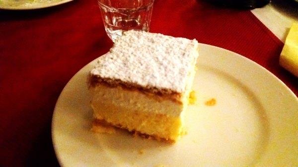 Lake Bled:当然是Cream Cake,湖边的餐厅Panorama Restaurant Bled据说是首创,3.7欧一件,是很好吃,但不讲究环境的,Bled Union对面的Smon我觉得味道差不多一样,这里2.7欧一件。Cream Cake在Bled什么地方都有,但不一定都好吃。我吃过酥皮不脆的。