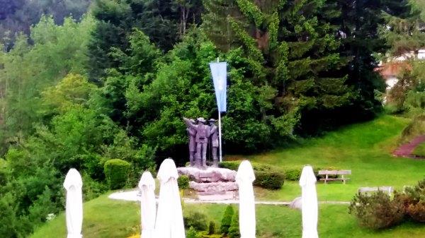 (下两图:Bohinj Jezero公交站附近,第一张是斯洛文尼亚首四个登Triglav的人,当时在19世纪)