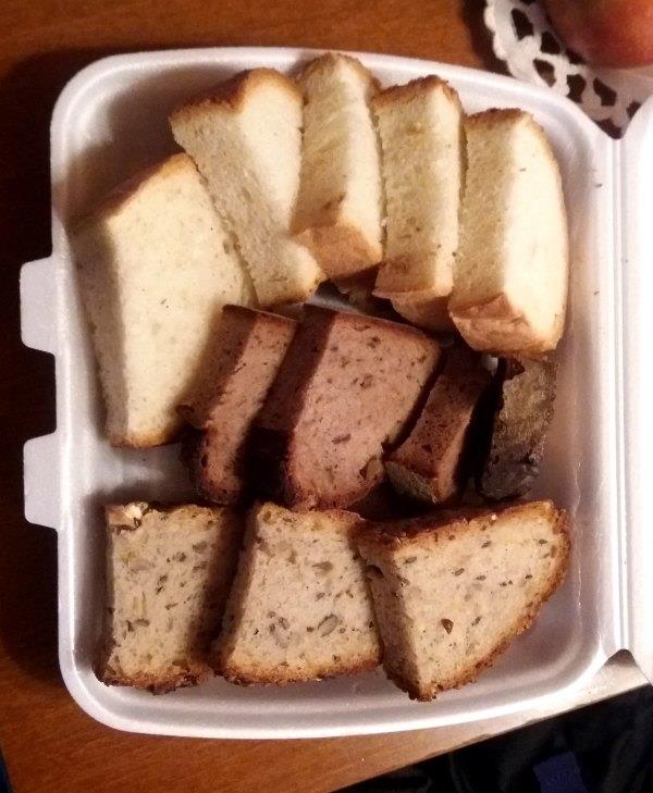 (下图:餐厅送的面包,我们第二天的早饭+午饭)