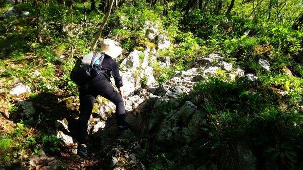 我们今天走的这条路,我不会说容易,但也不难。没有大危险,但也不是毫无技术。但我们两个登山都是业余的,我们能走的来,其他人也可以。小部分地方需要动 手。大部分是比较大块的石头路,不滑,不过我不小心差点滑倒好几次,也有森林路,平路。差不多全程都有树荫,不会太晒。带好水,我们每人喝了约1.5升。