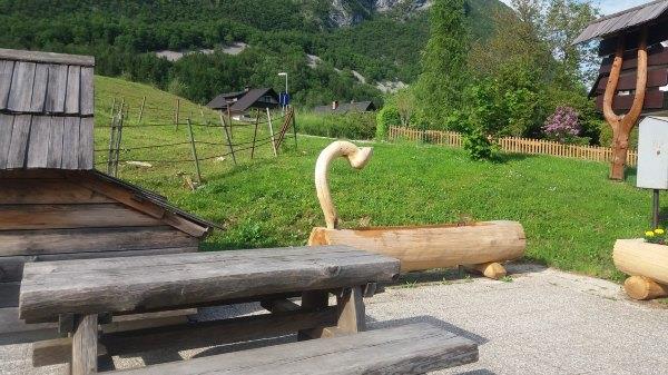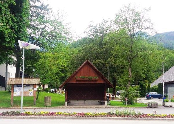 (下图:Bohinj Jezero公交站,特色的木制小屋)