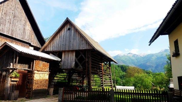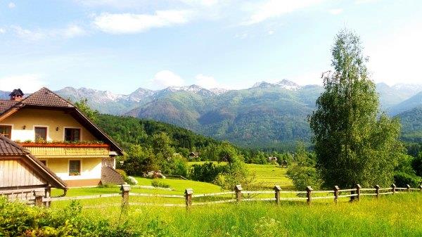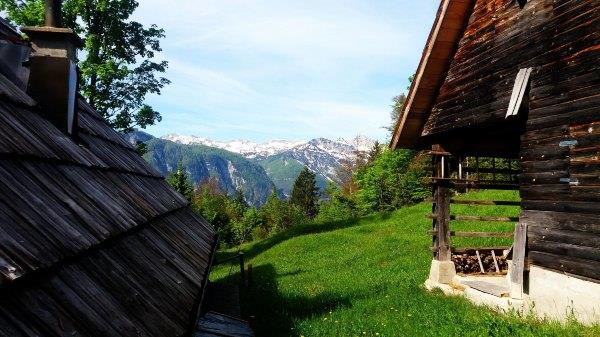 我 把我们当日线路放在wikiloc,那是后来用wikiloc手画的。但大致差不多,你用跟着Mapsme走,那条路都差不多,这一带该没有那一段特别 难。我们从Stara Fuzina出发,往西走直到Koca na Planini pri Jezeru mountain hut。单程四个半小时,先到Vogar,这是可以远看湖东侧的地方,西侧还有一个平台可以看湖景,两个地方mapsme都有的(下文详述)。靠近 Stara Fuzina一带看到很多漂亮的农村小木屋。路上还有牛,马和鸡,就是阿尔卑斯山脚下的感觉。