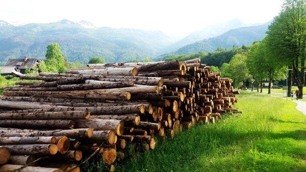 农村冬天用木材取暖,路上看见很多木材。