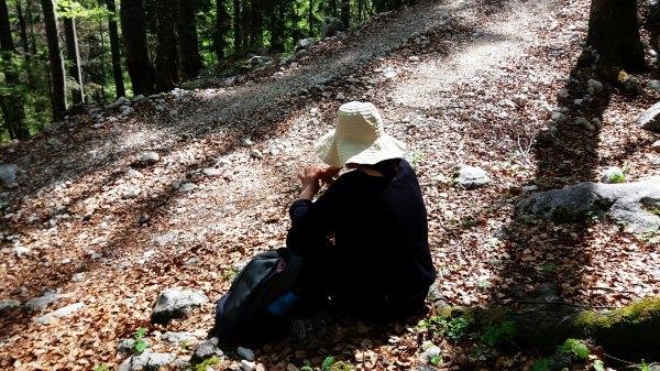 今天登山的人很少,路上我们遇到的最多10人左右。我们走着走着觉得饿了,就找个地方吃面包。很久没试过野餐了。