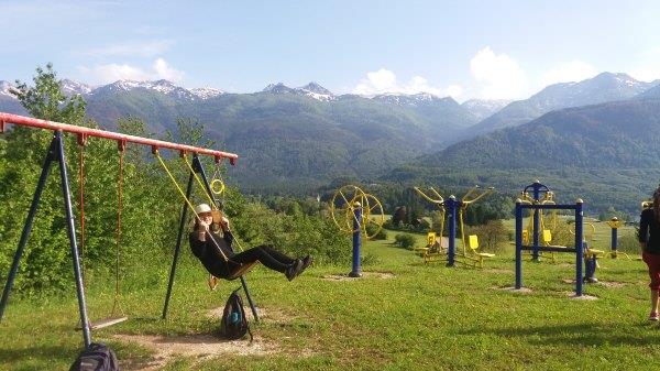 (下图:在阿尔卑斯山脚下玩秋千的小j)