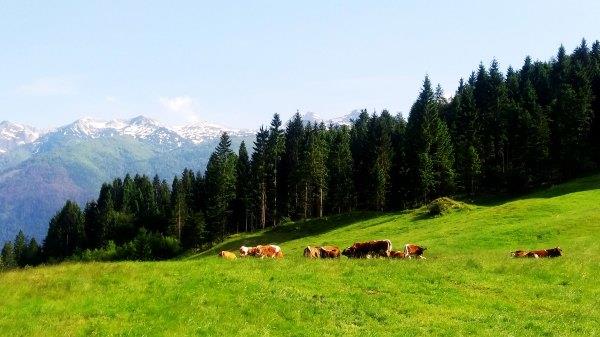 (下图:阿尔卑斯山脚下的牛)