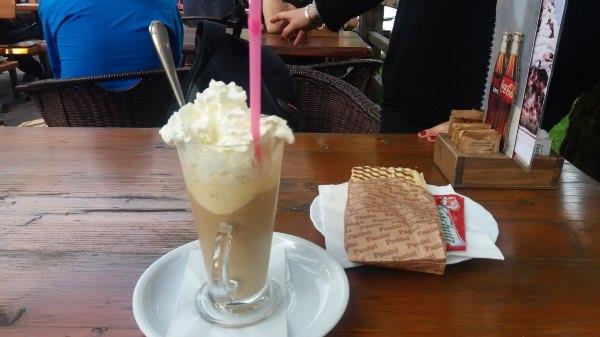 我们把所有面包吃完,到Bohinj Jezero的时候6点多,还有点时间,吃了点东西,当时很饿。我喝了我最最最喜欢的冰咖啡。