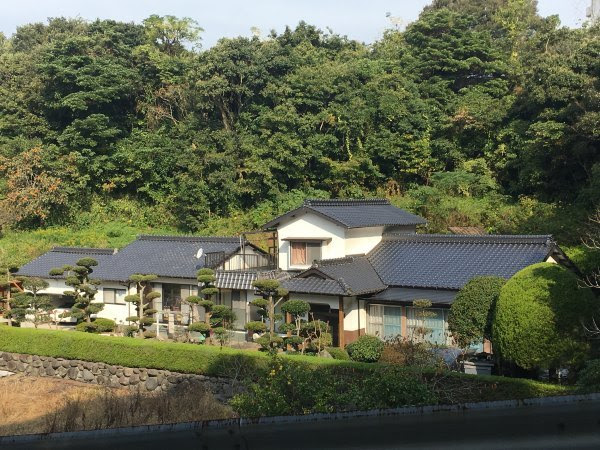 我们在没人的公路上走,经过村子但没看见人,这里的人家修的坟都很漂亮。日本人修坟就在家门口,方便祭祖。
