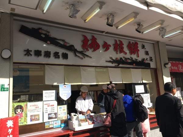 从太宰府车站出来,走五分钟就到定远馆。中间经过一条街是游客街,很多吃和纪念品卖。