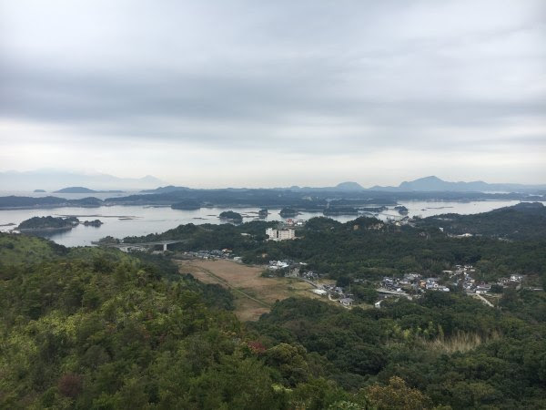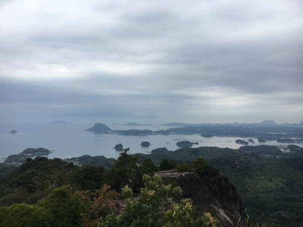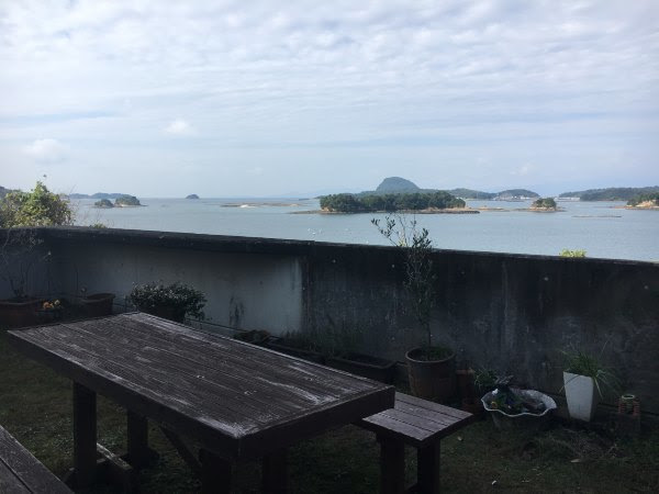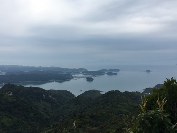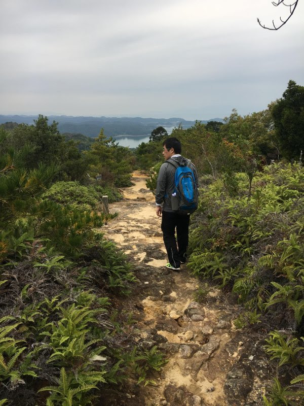 沿着车很少的公路,走不到一公里就可以到県立天草青年之家了,这是一家给本地团体活动的旅馆,环境很好,可以俯视海景。我们去这里的自动售卖机买水及问路(想借厕所也应该可以),职员还很热情的招待我们,送我们去上山的路上,并且示意那里动手爬山。我当时只是以为他表示登山的意思,但原来他这样表示还不够确切表达的......