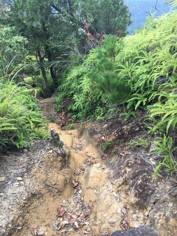 我坐着滑下去的时候很多,还好我的裤子有点厚度,加上之前没下过雨,衣服没磨破也没弄脏,扫一下就行。下来大概就200米,竟然搞到我从没试过如此的狼狈(当然我登山经验也不多)