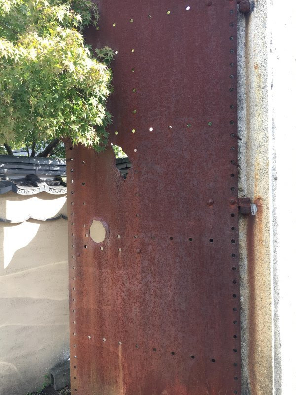 由于定远馆是私人建筑,里面是不开放的。现在馆外是停车场,停车场入口的铁门来自定远号,子弹痕迹在的。停车场外面很多中国人,却没有人走进来看改变中国历史的一场战争的痕迹。