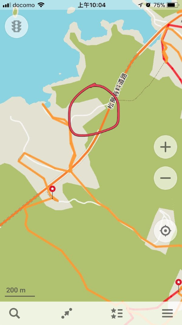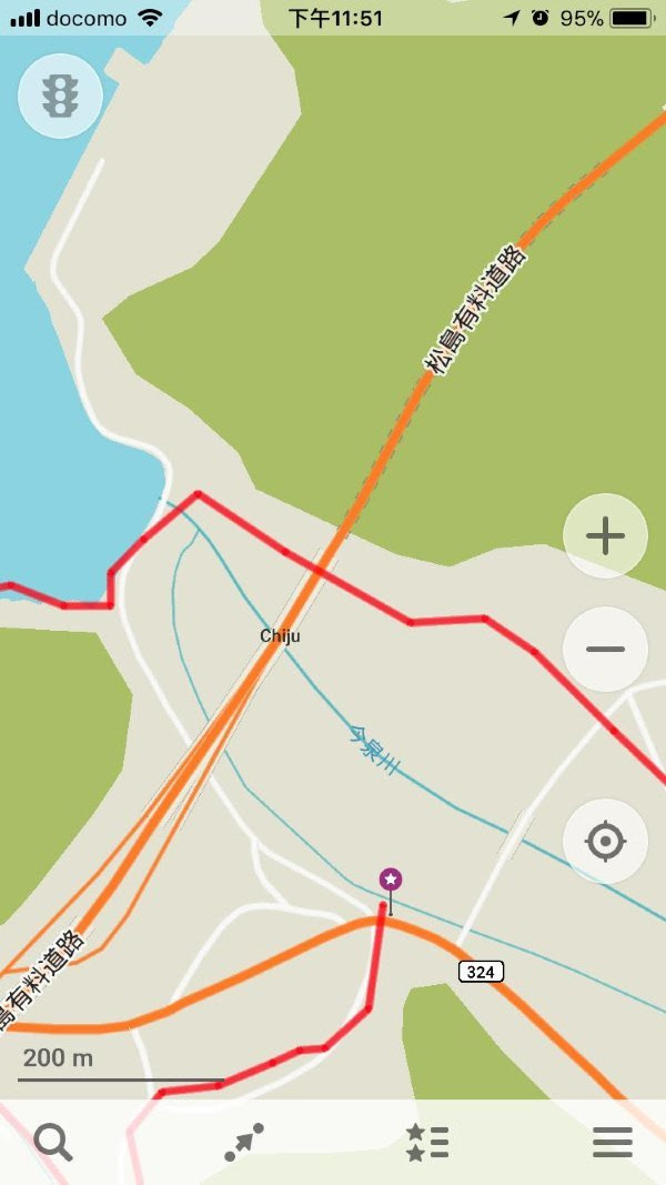 下图,我们下来的地方在红色橙色交界。但原来有料道路是高架桥......不过我总算又学会了一点。