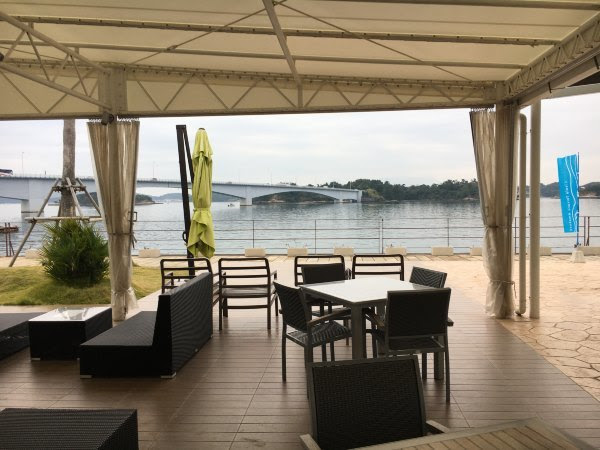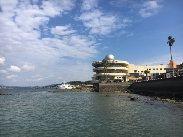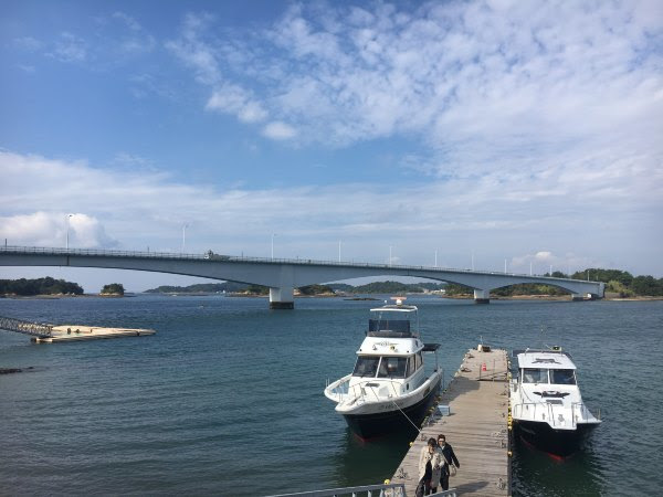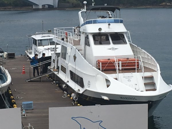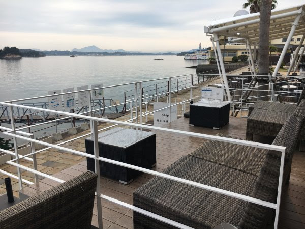 喝咖啡的地方也是看海豚乘船的码头(下图左边是天草五桥パールライン,松岛观景台有介绍的)