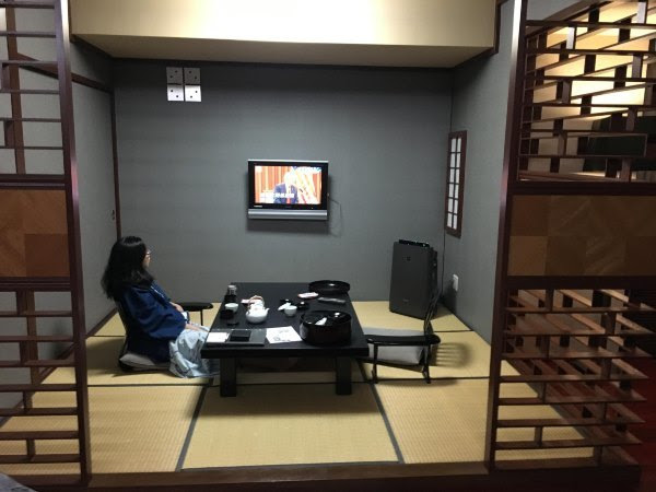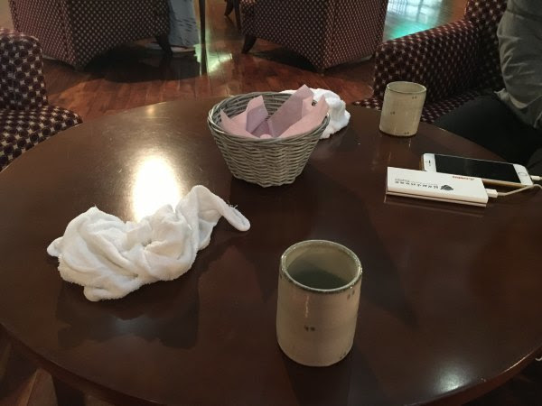 我们入住时,前台先招待我们到沙发坐,之后给我们泡茶(这个应该是天草盐水加紫苏),拿热毛巾给我们擦手。之后有人带上酒店房,我们早上寄存的行李已经放好在房间里。房间还提供二指袜。厕所洗发液是高丝的。