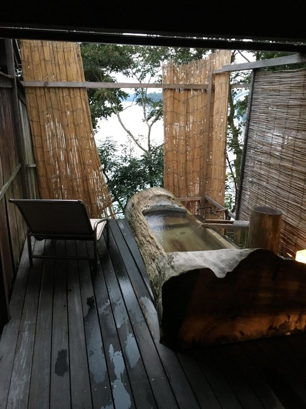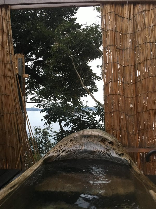 虽然我们吃的是最普通那种的海鲜怀石料理,但已经非常好吃,再贵点的有龙虾吃。住的海景房,里面有和室可以喝茶,房间非常大,价格包含一小时私人风吕,我们选了壱の湯,另外包含第二天看海豚的门票(这个官网价格4500的)。私人风吕虽然也向海,但在一层,公共风吕在六层,视野更开阔,面向几个小岛更赞。这里靠西,可以看日落。