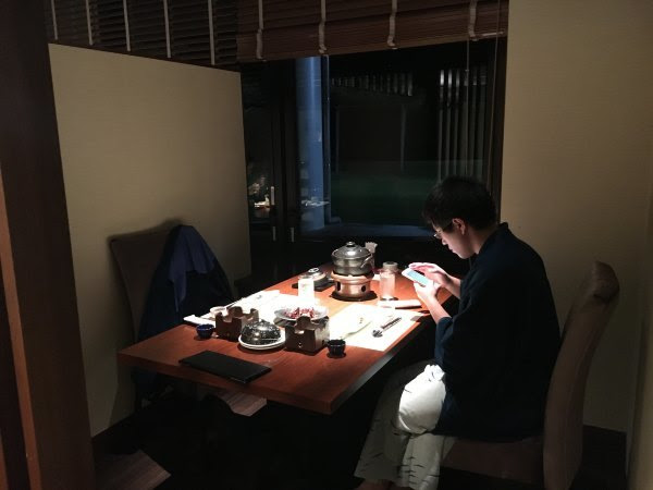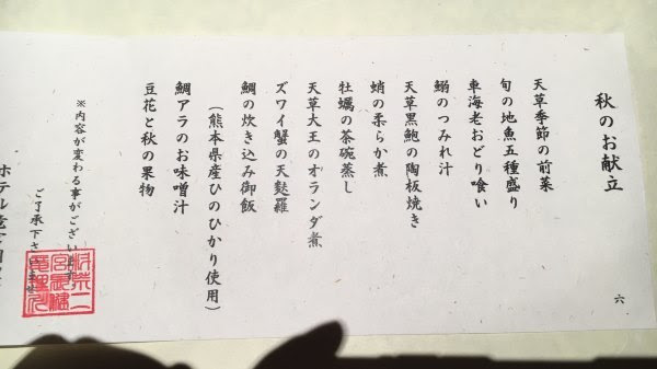 今天的另一重点就是海鲜怀石料理晚餐,除了一道是天草大王之外,全部是海鲜。怀石料理精致出名,我觉得这里的菜比起其他地方又更精致一点。这个餐厅高级的地方是全部独立个室,半包间那种,给你足够的私人空间。我们坐的靠海的位置。