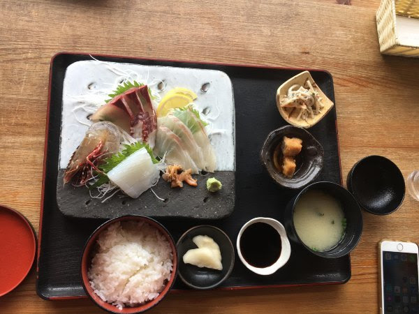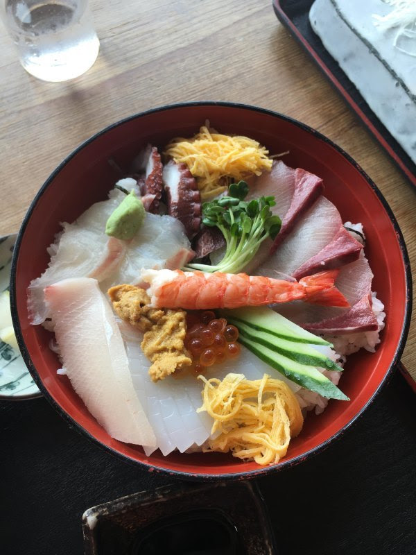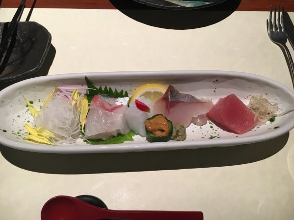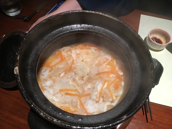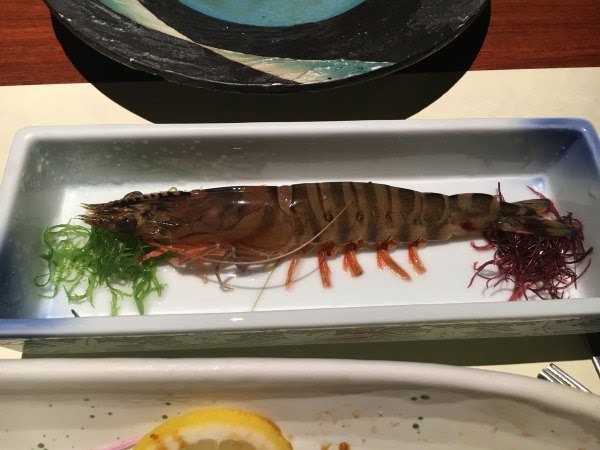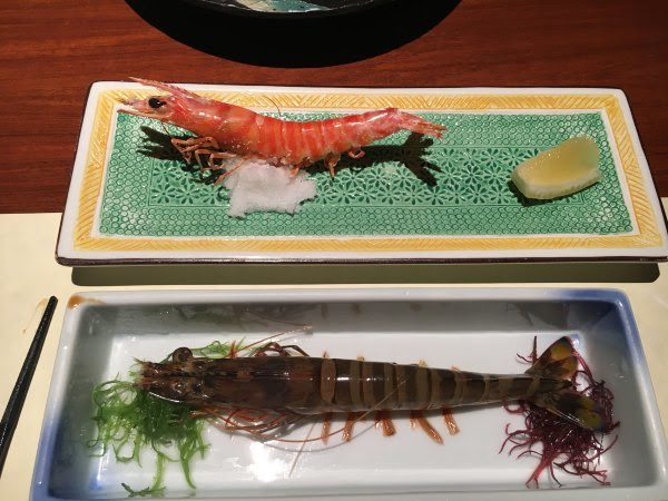 我吃的海鲜当,rgg吃的海鲜定食,生鱼片和昨天的差不多,最有意思是我们的虾和昨天的反过来,今天我吃熟的,他吃生的。这只生虾人家已经把壳剥掉,而且虾肠也挑了出来,不过虾还是动的.....感觉好像活吞那样。人家技术真是高,昨晚我把虾拿在手里,它就挣脱出来,最后要强行去头。(两个套餐都是1580日元,另外加税)