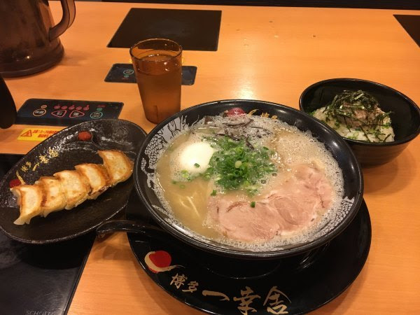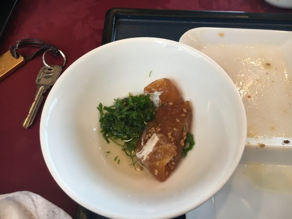 晚饭位于赤坂店的博多一幸舍-大本名家吃拉面。赤坂地铁出来往南。当时人不多,吃的最受欢迎的叉烧拉面,800日元,多加300有五只小饺子及叉烧饭。这个拉面好吃,汤很浓,不咸也不油。饺子普通,叉烧饭倒是很好吃。再次佩服日本人的心思,其实是很普通的叉烧,他们把叉烧弄成一个小球放上去,弄得那么好看就升级了。这个饭配上芝麻,辣味增及辣咸菜很好吃。咸菜及味增都说的是激辛,但咸菜不太辣,味增挺辣的说。