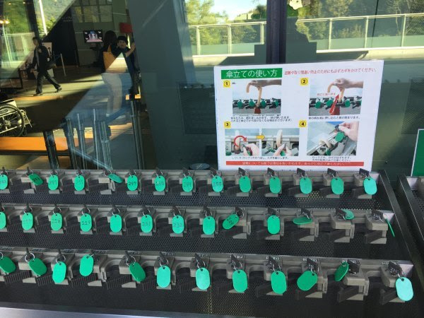 由于不能带伞入内,这里很贴心的设计了放伞的地方,不会被偷的。