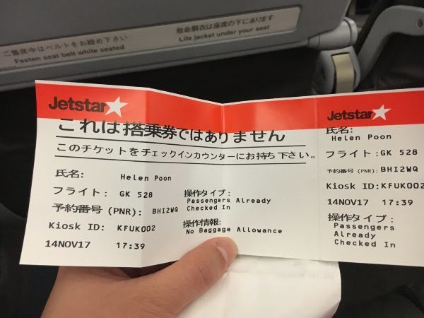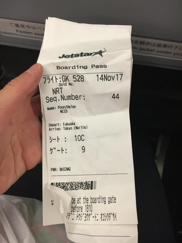最后要说说我们去东京的捷星航空,我们早一天就在网上办了值机,只是在值机机器想打印登记牌时,老是说我们还没办理,但同时又弹了一个像登机牌的东西出来。我们当时就以为这是登机牌就拿走了。
