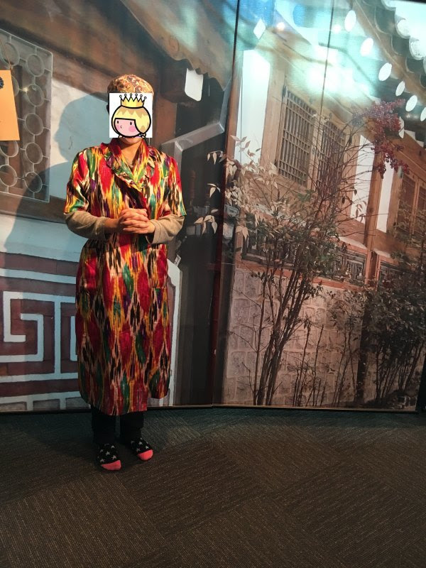 我试了越南,韩国和乌兹别克斯坦的衣服,阿姨们太热情,试完一件又让我试另一件,我就都试了。