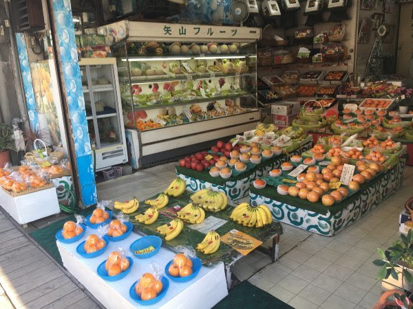 经过一个水果店水果排的整齐有条。