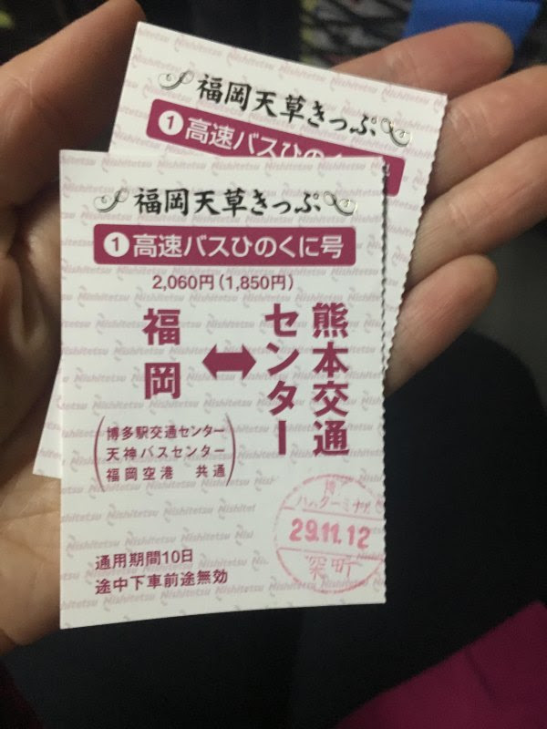 (开支:午餐:1706,天草-熊本公交:1480,熊本-福冈大巴:2060,福冈地铁:260)