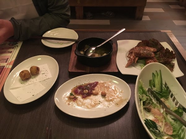 熊本真是到处都是马肉。今晚跑完,我只想多吃,就在酒店附近定了一家放题,女士3200,男士3700,Alpice Due。大巴站东侧很多吃的,是购物一条街,还有24小时都开的店。
