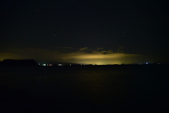 快12点时,洗碗公主洗完澡拿了杯热水,准备在阳台凉一下,赫然发现天晴了,星星都出来了。她把我叫醒了,大伙12点出去观星。我们走到海边时,石头看到海里一闪一闪的东西,由于洗碗公主在水族馆见过,一看就知道这是水母,大家都是第一次海里见水母发光呢,实在很好玩很可爱,每次都会持续一两秒,这两天水很清,可能就看的特别好了。我们看水母的地方就在海滩dome型住宿那里。