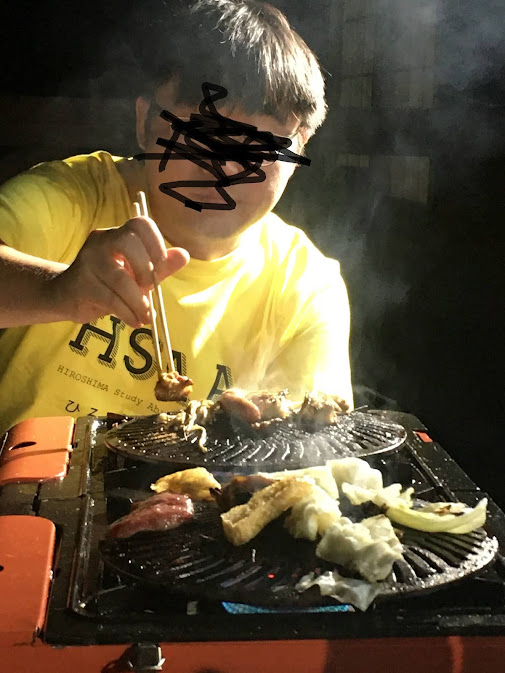 晚饭给的烧肉其实足够,不过我们觉得花钱太少,又去超市加了点菜。买了些肉及生鱼片,我和onion学长还不下心看错价格,生鱼片应该是便宜50元,我们看了50%,还好没有买很多。原来回去想泡温泉,不过9月1日开始关门了。那我们就早点吃饭吧。
