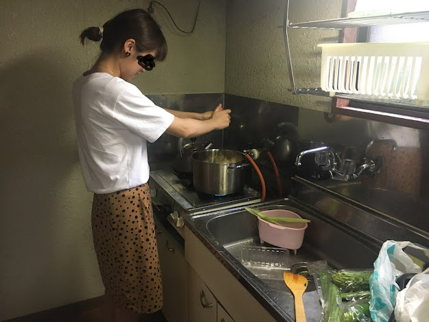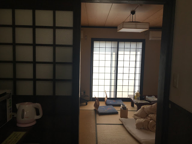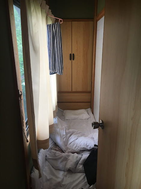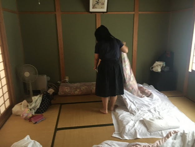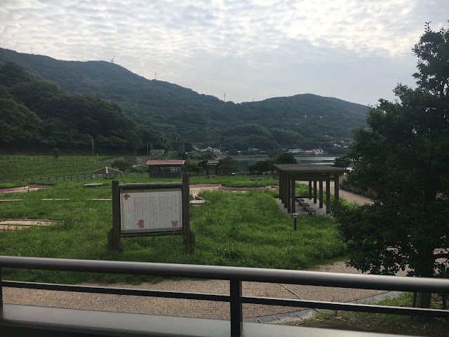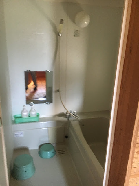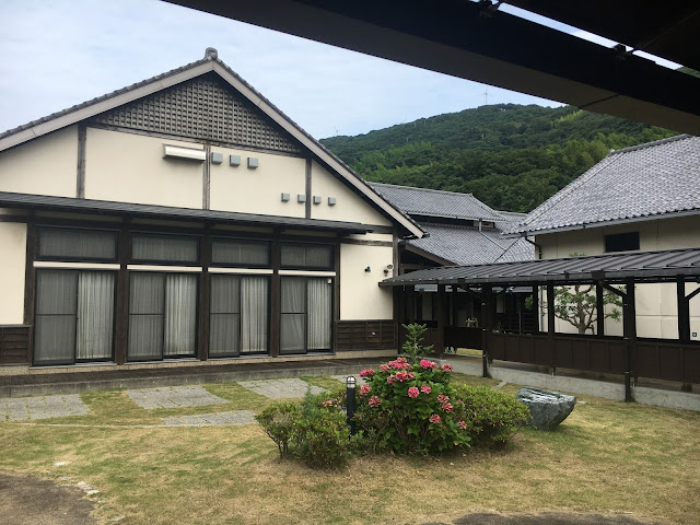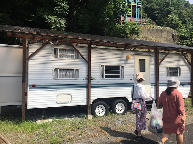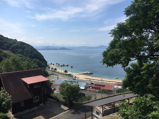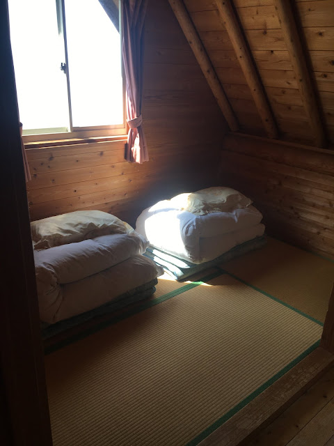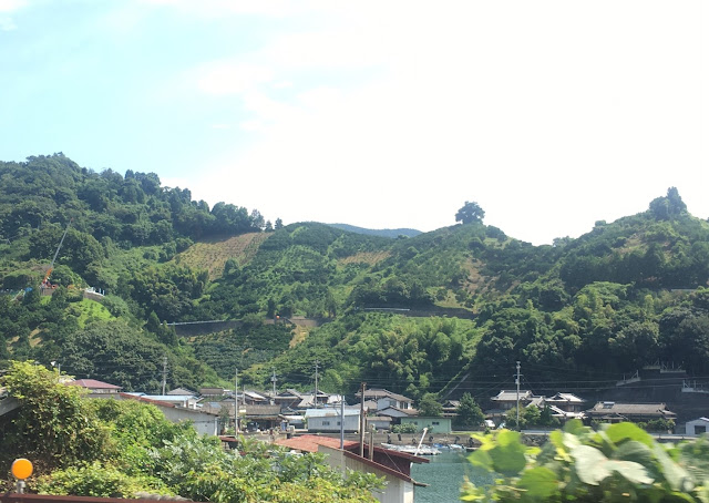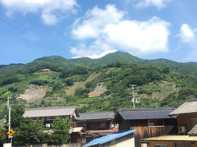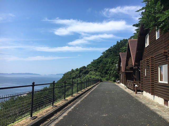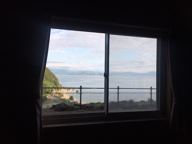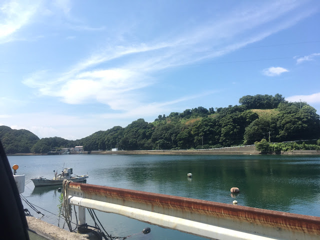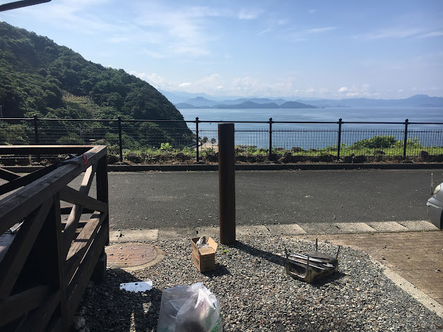 海边的明浜,这属于西予市。路程虽然只有几十公里,但下山一段非常难开,除了弯多还很多单程路,我得一路开车一路响铵,大部分时间时速不超过30公里,有些山里的路段更是手机没信号。我都忘记了开了多久,总共两三小时吧。入住时间该是5点之前,但我们打电话去说5:45到,人家也愿意等我们,真是非常感谢(从营地去买菜的地方要开车半个多小时,我们是买了菜才过去的)。