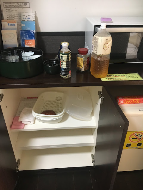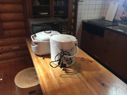 厨房什么都有,电磁炉有三个灶,烤箱还可以放两块面包。除了一般厨具还有一次性筷子,擦丝的东西,茶壶等。