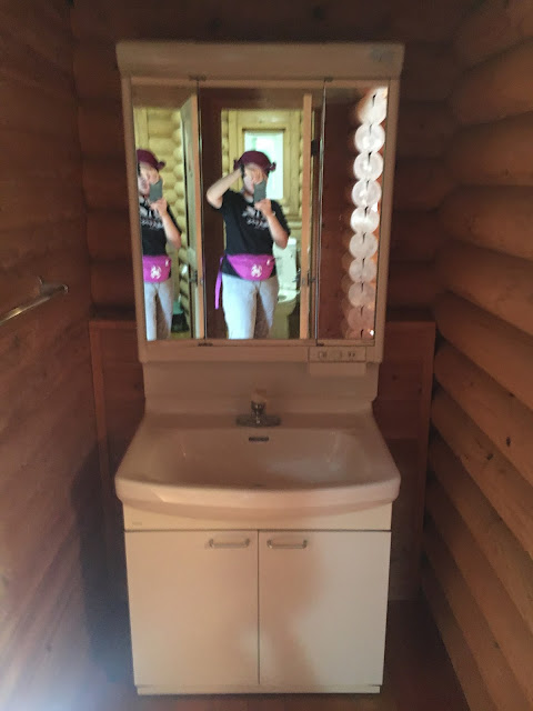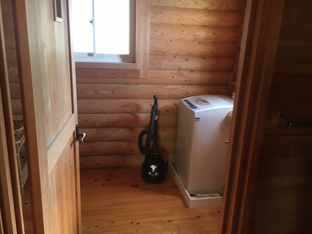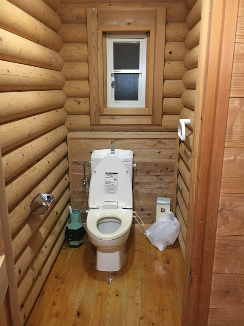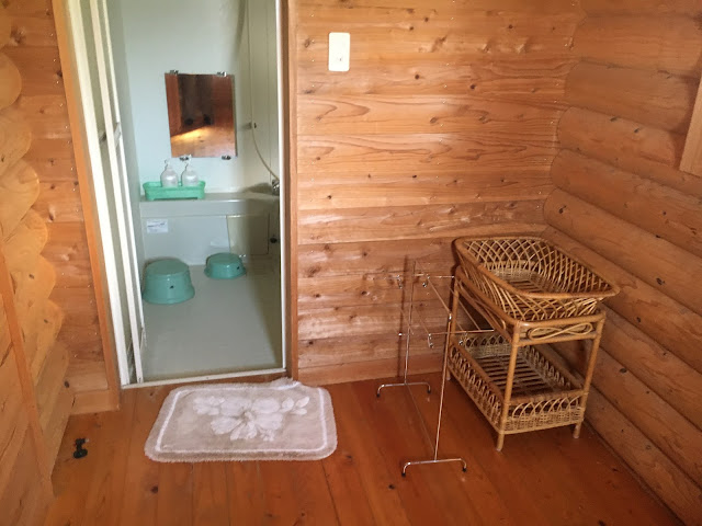 厕所很宽敞,而且也是一根一根木头的,我坐在里面都好好欣赏了一番。