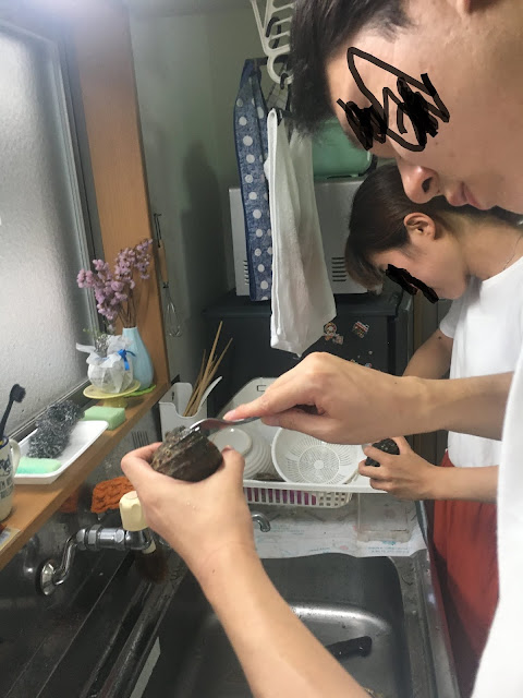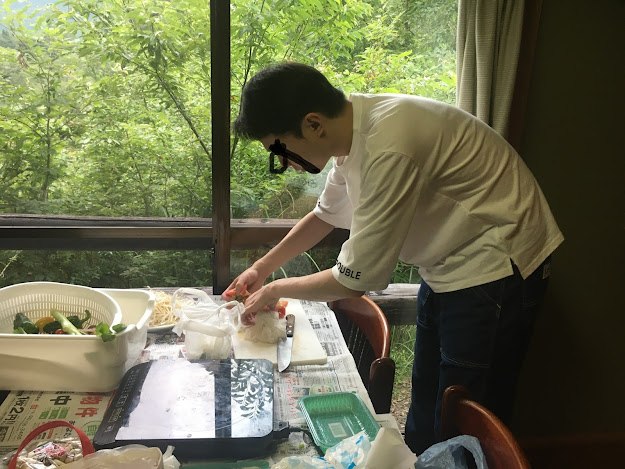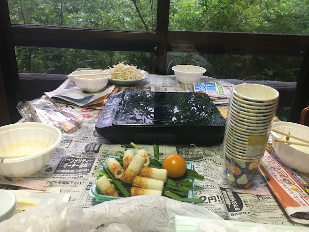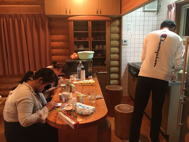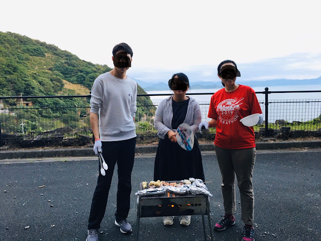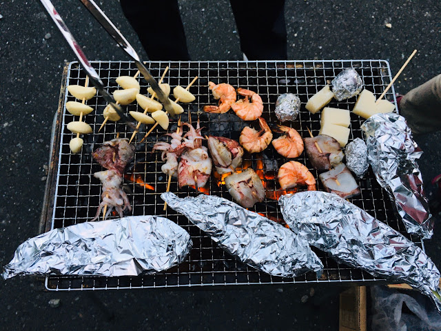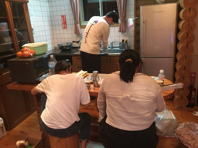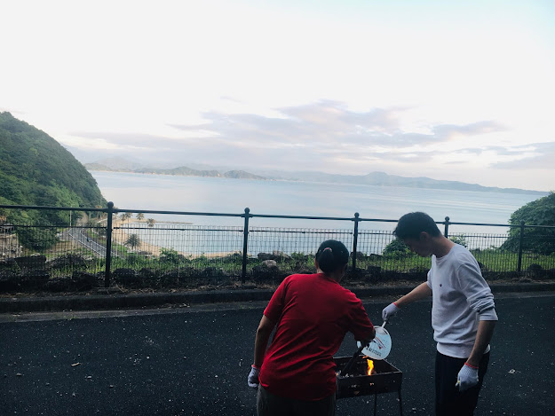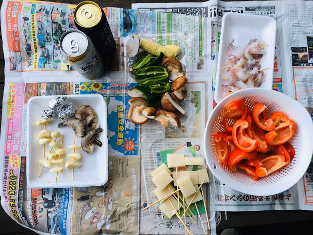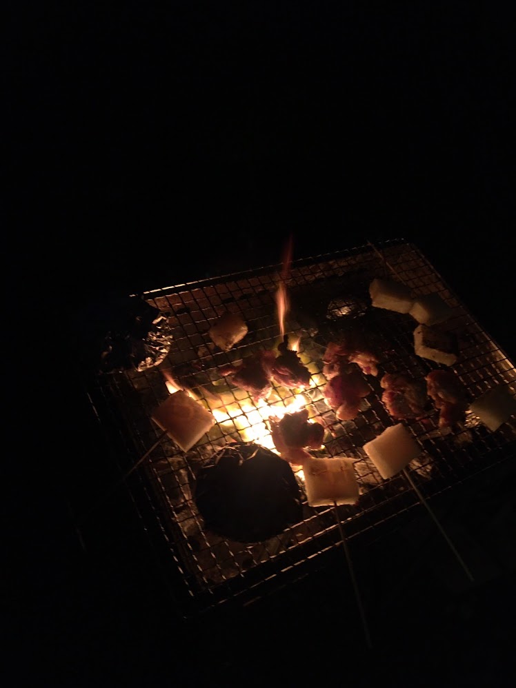 看完房我们要烧烤了,我们四个以前都没试过自己搞碳烤,不过这个没搭帐篷难(去年去蒜山学会了搭帐篷),但烧烤炉我们一开始不会弄,就连那四条腿都不知道干嘛,最后得看youtube学....不过这次之后,我们也算是会搞碳烤了。
