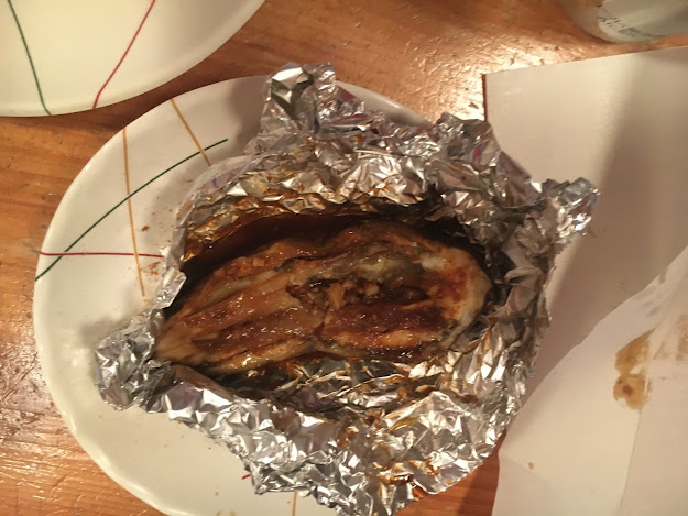 这个烤茄子也是lele做的(锡箔纸要自己带)。