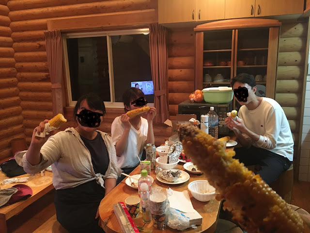 我们把所有东西烤好后就会屋内开空调继续吃了,大家都觉得我种的甜玉米很好吃呢。