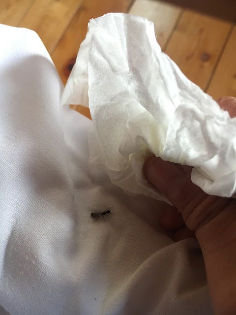 早上醒来,发现床上有大蚂蚁,还有我手上有纸巾,直接了当的解决了。