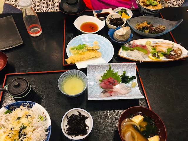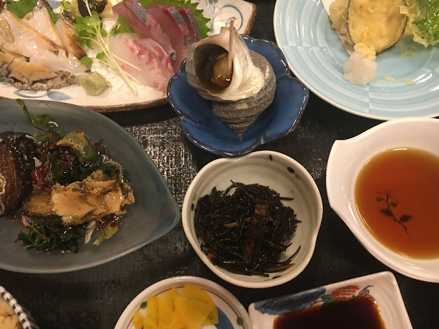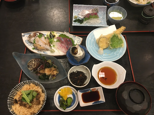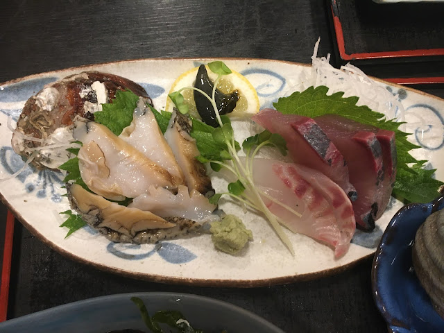 好不容易我们下山了,中途全是森林山路,有点森林旅游的感觉。我们到了西予市,先去桥本鲜鱼店买海鲜。这家店有网站我原来以为挺大,不过海鲜不太多,我们买了墨鱼,虾及炸鸡,之后就去附近的Fuji买菜了(当时好多特价,我们还奢侈一把吃了爱媛和牛,还有高档三文鱼)。这里还有家买菜的店卖本地新鲜食材,看网站还有很多试吃,但要绕一下我们就没去了(这家店叫