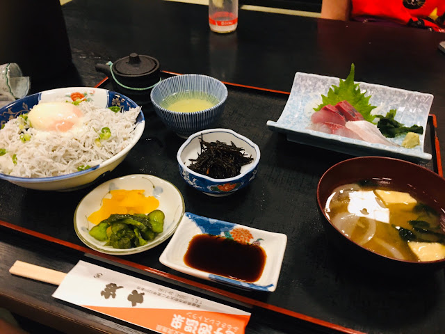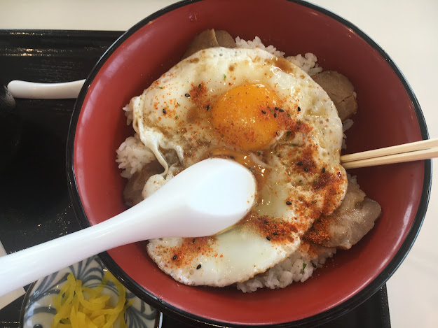 耶!我们又回到旅程第一个地方了-来岛海峡大桥,我吃的猪肉鸡蛋米饭,740日元,这里选择很多,大都这个价位。这里就只能用现金了。