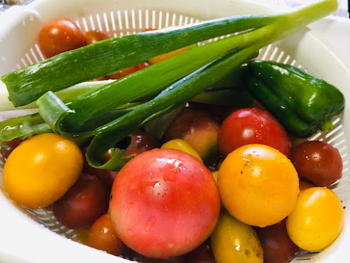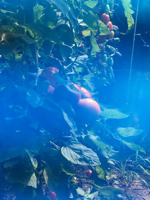 村内有人种番茄,因为我也在种,忍不住研究一下,这是我见过种的最好的,番茄长得比人高。关键技术是把最底部的干剪掉,这样番茄就不会碰地,不碰地就不会烂了。