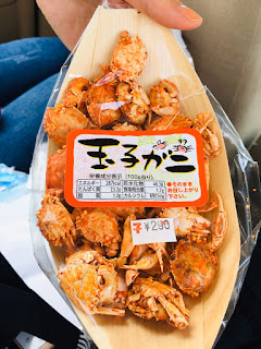 我们路上经过便利店,有本地特产 - 螃蟹。我们看着就像刚才龟池湿地看到的,大家都买了点小零食,因为这些小零食我们撑到2:30才吃午饭。